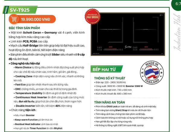 Các thông số mang tính kỹ thuật của Bếp từ đôi Sevilla SV-T925 nên xem