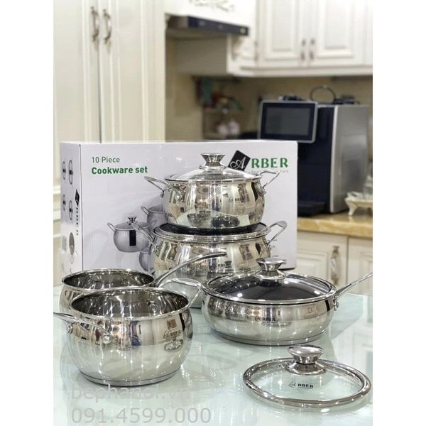 Bộ nồi bếp từ inox 5 món dáng địa cầu tròn AN-06BB, dung tích lớn, động bộ bếp đẹp, chuyên bếp từ tính, siêu bền. Giao ngay tại Hà Nội. gia dụng