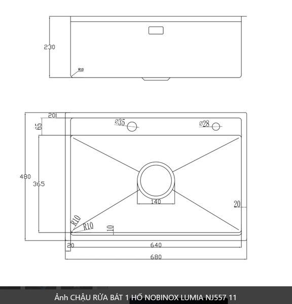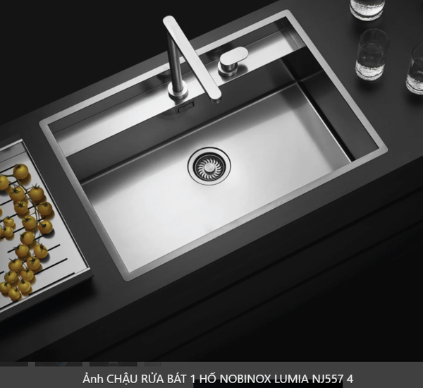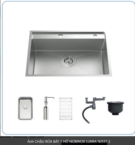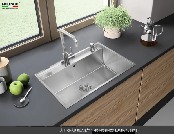 CHẬU RỬA BÁT 1 HỐ NOBINOX LUMIA NJ557 độ dày 3mm và 1.2mm rộng 68 cm + 48 cm vân siêu mịn Vip