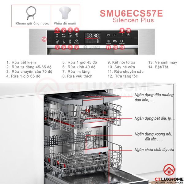 Rổ thứ 3, ExtraCleanZone, Thanh chống trượt trên rổ, Chương trình vệ sinh máy, Tự động mở cửa khi sấy, Điều khiển bằng điện thoại qua App Home connect