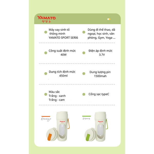 Máy xay sinh tố mini cầm tay Yamato 450 Sport Blue – Nhỏ gọn, mạnh mẽ, chuẩn Nhật Bản